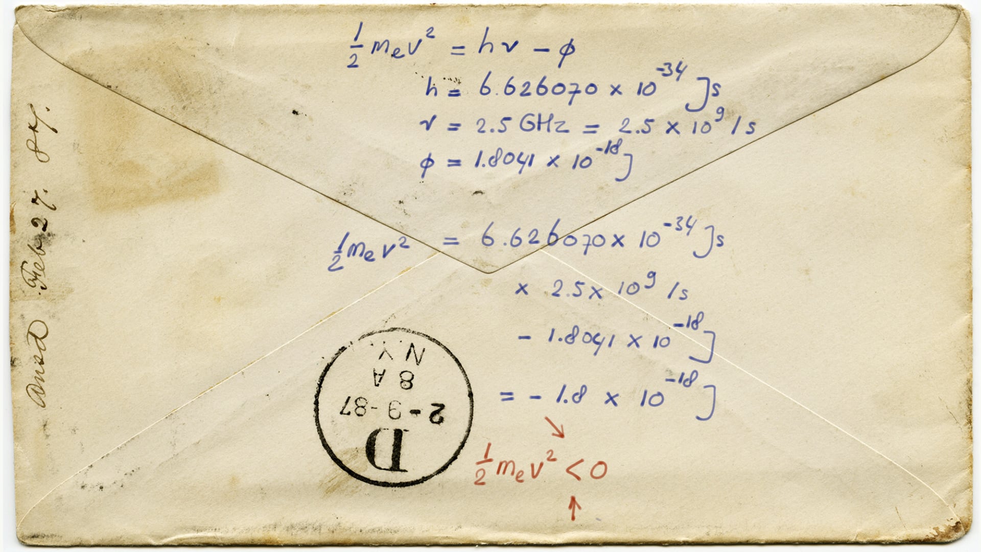 In 1921, Albert Einstein won the Nobel Prize “for his services to Theoretical Physics, and especially for his discovery of the law of the photoelectric effect.” Not a word about relativity. So, no, he did not win the Prize with $ E=mc^2 $. Though it is his most famous equation—which, by the way, is not the complete version—it is not his Nobel Prize-winning formula. We will write it down, but first, we describe what this photoelectric effect is.
